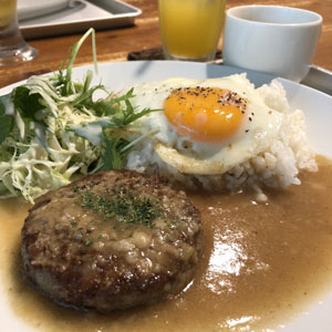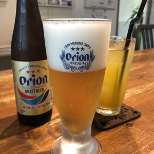 石垣牛カレー(1540円)と石垣牛ハンバーグのロコモコ(1450円)、そしてオリオンビール。ランチと夕飯はメニューが違うようで、夕飯は量も少なめでそんなにリーズナブルではないなぁと思った。