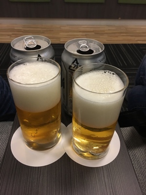 バスは1時間もかからずに桃園空港に到着した。まだチェックインの時間まで1時間20分くらいあるため、フードコートに行きビールとコーヒーを注文。ボクは冷たいビールで喉を潤した。