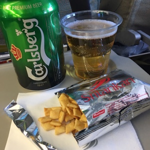 飛行機に乗り込み出発だ。なかなか離陸しないのでウトウト寝ていたらいつの間にか飛んでいた。飲み物タイムになったのでスリランカビールを頼んだのだけれどあいにく品切れだったみたいでカールスバーグになってしまった。残念♪(´ε` )