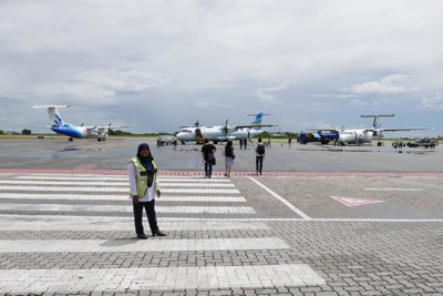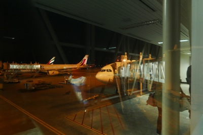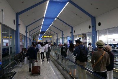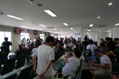 空港の受付で荷物を預けてチェックインして搭乗まで30分待つ。こんなに待つのならば、ボートの出発をもう少し遅らせてくれればいいのに・・・。