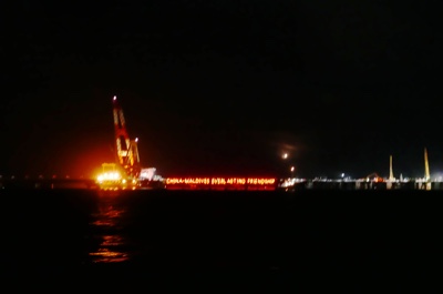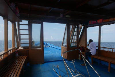 船に乗り込み、遠くで輝いているマレを目指す。船の中は真っ暗で電灯も何もない。モルディブの海はきっと綺麗なのだろうけれど真っ暗で何も見えない。遠くに中国資本が作っている橋があった。中国は世界じゅうに触手を伸ばしている。