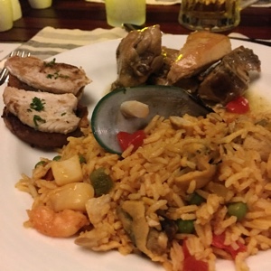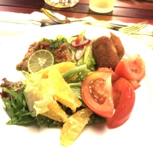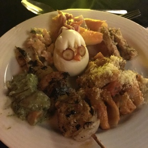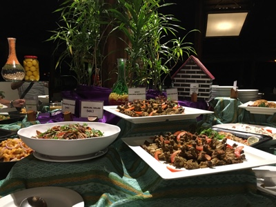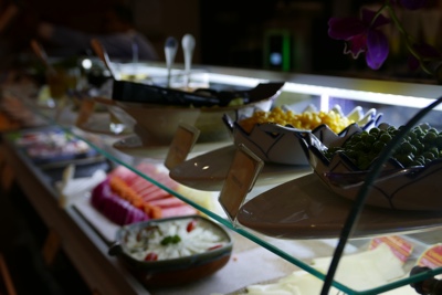 夕飯は豪華なビュッフェだ。美味しそうなものがありすぎて何を食べるか迷ってしまう。