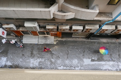 帰り仕度をして荷物を宿に預け、朝の散歩をする。九份を去る前にもう一度「阿妹茶酒館」を見ておく。昨日撮影した場所の奥の別の店の階段の上で観光客たちが写真を撮っていたので、ボクも階段に上がってパシャり。この店で食べていないのにごめんね〜。