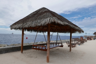 サンセットビーチまで来てみた。このあとダイビングをするのでビールは我慢してコーラを注文。日差しは強いので強力な日焼け止めを塗っている。海にはあまり人はいない。この時間、みんなはどこに行ってるのだろうか。マリンスポーツをしない人は何をしているのかな?
