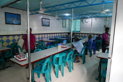 メインレストランで少なめの朝食を食べ、シュノーケルの支度をする。