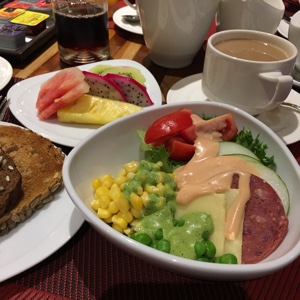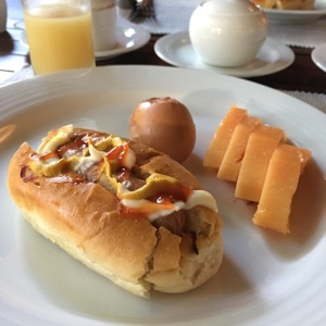 夜中に出発したのでお腹がすいてきた。ボクたちはレストランで朝食を食べることにした。この島は日本人だけでなく中国人の観光客も多いようでレストランには中華料理や簡単な日本料理のコーナーもあった。