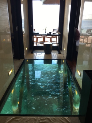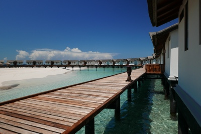 メインレストランから水上ヴィラまでは歩いて10分ほどかかるのだが、トカゲや鳥たちを見ながら森の中を抜けると目の前に海と水上ヴィラが広がる。なんと贅沢なのだろうか。
