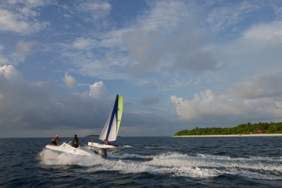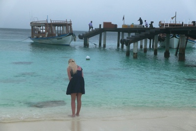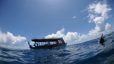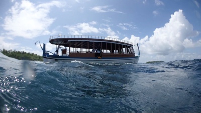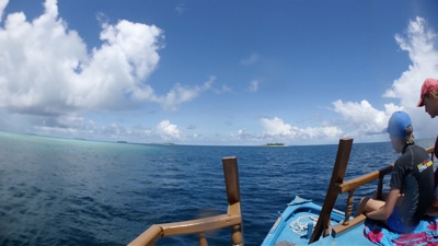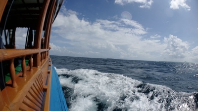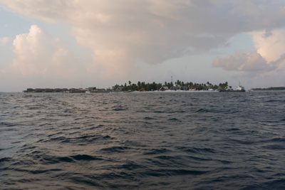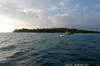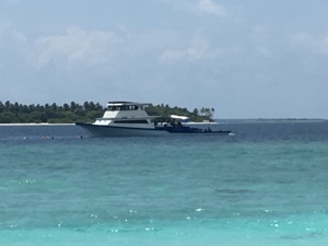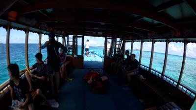 ドーニーに乗って2島めに移動する。船内では1ドリンクついてるのでビールを飲む。天気が良くないので少し肌寒い。モルディブはイスラム教徒の国なので、肌を露出していた西洋人の女性はスカーフ等で隠すように言われていた。