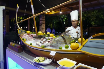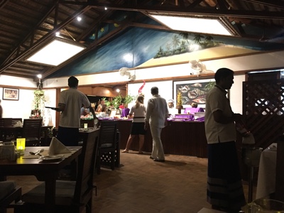 メインレストランに行って夕飯。このレストランは毎日いろんな国の食べ物も出してくれてまったく飽きない。高級ではないけれど種類も豊富で家庭的な料理が多い。リーティビーチリゾートは食事も評判の良いリゾートらしい。それにしても日本人、ボクたちの他に誰もいないな・・・。