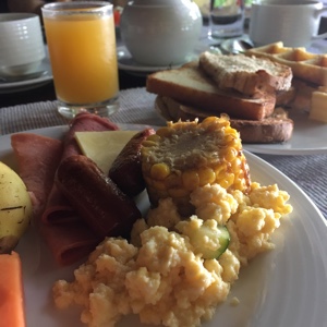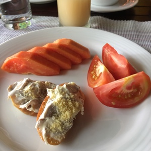 7時に起きて朝ごはん。量はたくさん食べられないけれど、少しずついろんなものを食べる。