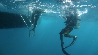 無事、海面まで上がってボートに乗り込むことができた。こうして久々のボートダイビングはなんとかできた。