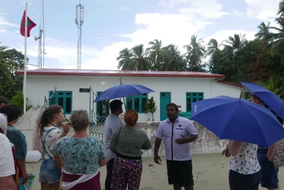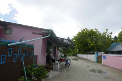 小雨になってきたところでドーニーを降りて傘をさした。2班に分かれ、それぞれにガイドの引率がつく。歩いては立ち止まり、「ここは小学校で〜」とかの説明をしてくれる。もちろん英語なのであまり理解できていない。ローカル島は素朴で、まったくリゾート感が無い。作られたモルディブとリアルなモルディブ。この対比は面白い。雨だったからなのか、あまり人気もないが、たまに子供達を見かける。今日は土曜日なので学校も休みなのだろう。