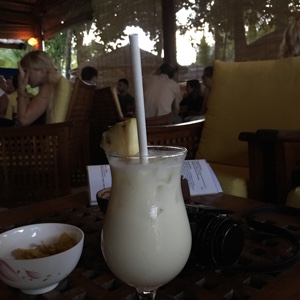 ココナッツジュースを飲みながら説明を受ける。料金に含まれているアクティビティもろいろあって楽しめそう。ここには5泊するのでゆっくり考えようっと。