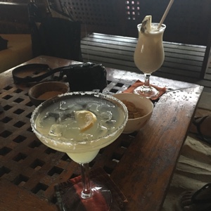 今日は朝早くから潜って、午後からは歩いて、結構疲れてしまった。BARでカクテルを2杯ずつ呑む。オールインクルーシブだと値段を気にせず呑めるので安心だな。その後はいつものメインレストランでディナーだ。体が疲れているので体力復活するために肉を多めに食べるのだ。メインレストランではボクたちが座る席はだいたい決まっていて、料理からは遠いけれどすぐ外が見える席で気に入っている。