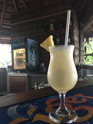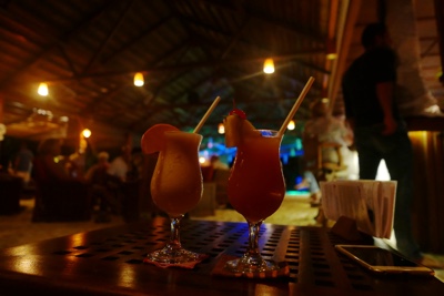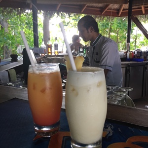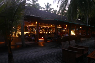 ボクたちは宿泊している水上ヴィラから島の中心部まで毎日何度も歩いて行った、その途中に小さなバーがある。気にはなっていて通るたびに「ハーイ!」と挨拶はしていたのだけれど、なかなかタイミングが合わず行くことが出来ていなかった。今日こそはそのバーで呑もうと思って楽しみにしていたのだ。