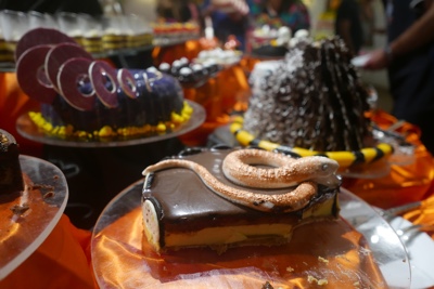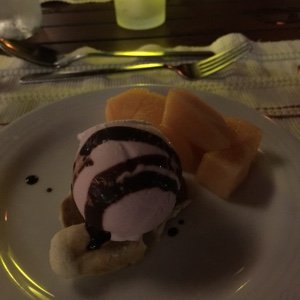 見た目は可愛い食べ物だらけだが、デザートは想像どおりすごく甘い・・・。メインレストランでは最後の食事なので、ずっとボクたちのテーブルを担当してくれた