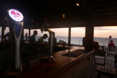 サンセットバーに着くとすでにたくさんの人たちが集まって来ていた。海に沈む大きな夕日を見ながら飲むビールは最高だ。