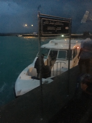 これから嵐の中スピードボートで出発だ。ボートが係留されている桟橋を歩くのが怖い。風も強く