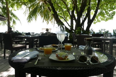 大きな荷物は部屋に置き、手荷物だけ持ってムードゥーバーで軽めの朝食だ。ここは海の上に建てられたバーで来たかったのだけれどオールインクルーシブに含まれていなかったので今まで来なかったのだ。しかし最後に来ることが出来て良かった。
