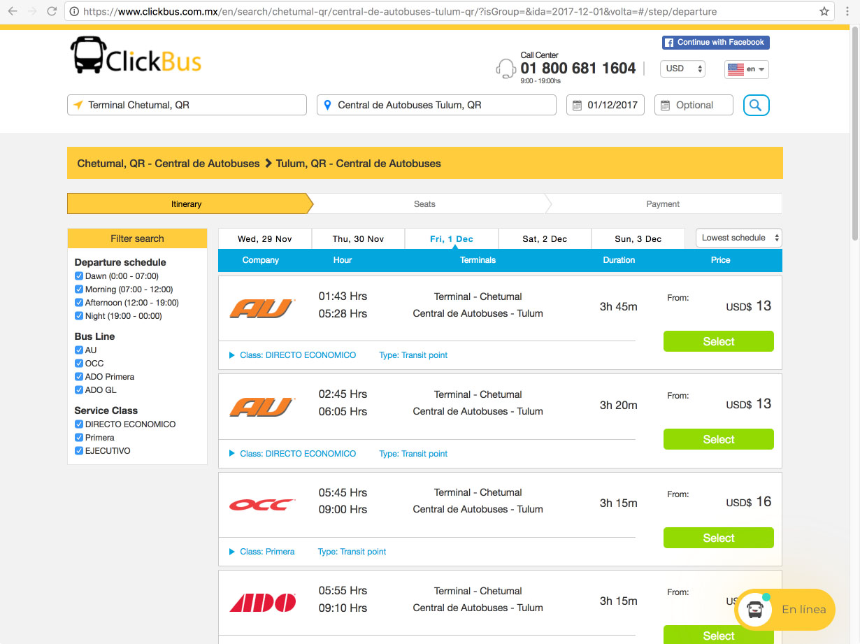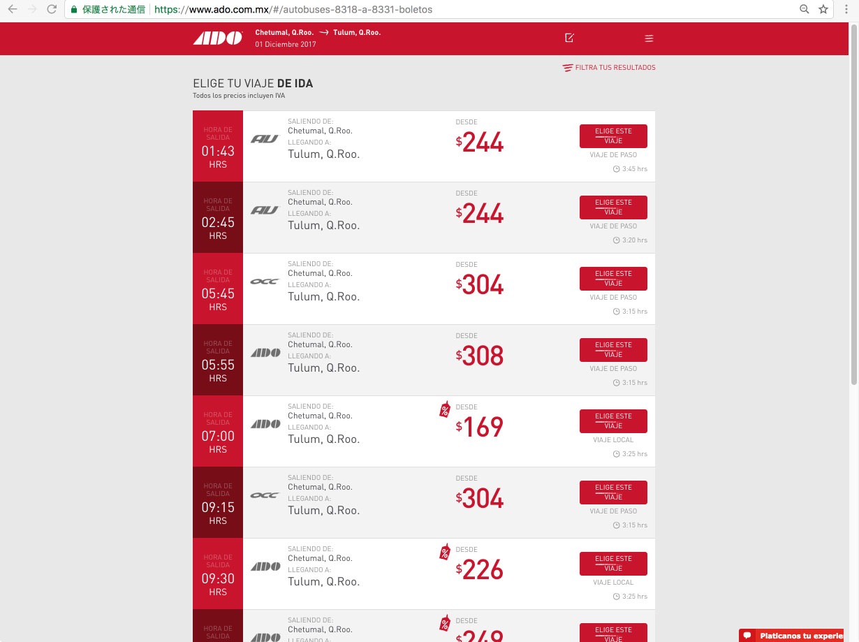 チェトマルからトゥルムへは深夜バスで行きたいのでADOバスのサイトで予約をしてみる。時刻表もあり座席指定も可能だ。いざクレジットカードで支払いをしようと思ったのだけれどうまく決済されない。ネットで調べてみると、どうやら日本のクレジットカードで日本から決済しようとすると弾かれてしまうみたいだ。メキシコ以外の国の人はどうやって予約しているのだろうか。