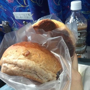 バスターミナルの売店もまだ開いていないのでこれがボクたちの朝ごはんだな。