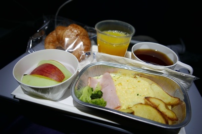 メキシコシティまで残り1時間半くらいのところで朝食が配られた。クロワッサンとスクランブルエッグだ。朝食なのでアルコールはなし。