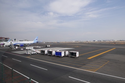 現地時間の12:15に無事メキシコシティ空港(ベニートフアレス国際空港)に着陸した。12時間ほどかかったが地球の自転と逆回りなので日付でいうと出発日と同日到着だ。なんか変な感じ・・・。預けていた荷物がなかなか出てこない。1時間近くかかりやっと荷物を持ってメキシコ入国だ。