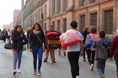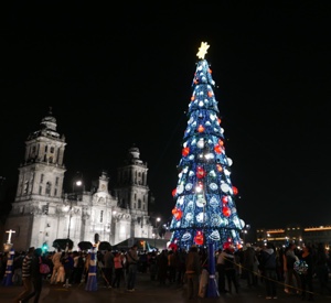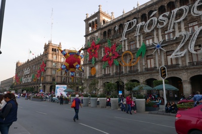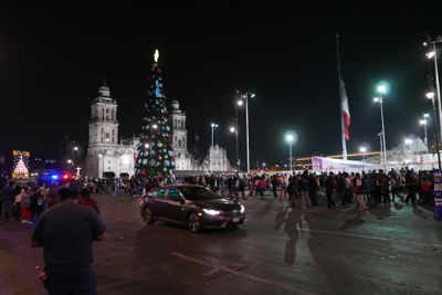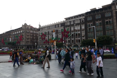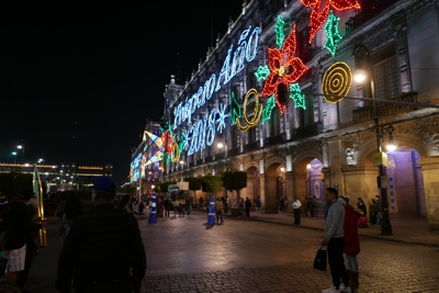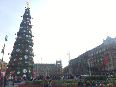 街にはクリスマスの飾りが施されており、ソカロ歴史地区のコンスティトゥシオン広場にはたくさんの人たちがいた。