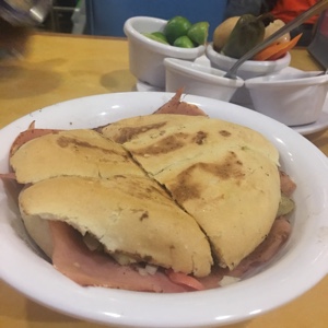 市場の近くに人混みのあるサンドイッチの店を発見!まだ時間があるのでBBQサンドイッチとジュースで朝ごはんにした。今日は早起きだったしチュロスしか食べていないのでこんがり焼いたサンドイッチは超美味かった。