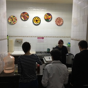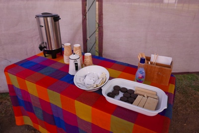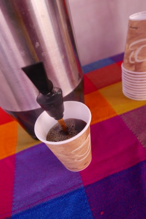 しぼんでいる気球に熱気を注入している間に休憩所でコーヒーとクッキーを軽く頂く。