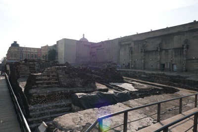 メトロポリタン大聖堂のそばの地面より低いところに遺跡がある。テンプロ・マヨールはウィキペディアによるとアステカの人々の文明の上に、スペイン人によって西洋文化の建築様式が覆いかぶさるように建てられた巨大な神殿なのだそうだ。この時期の中南米、アジア、アフリカ・・・いたるところで西洋列強が自分の国の利権で争っていた。アステカ人もマヤ人もそういう西洋列強により滅ぼされた文明だ。