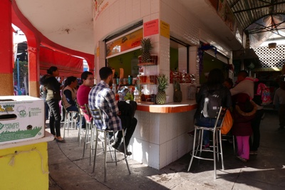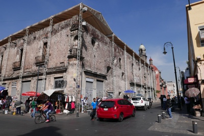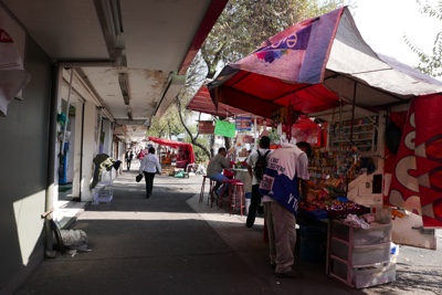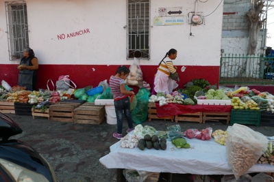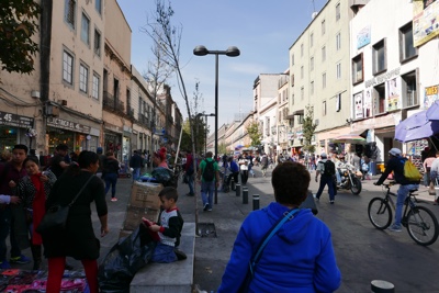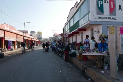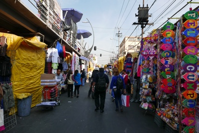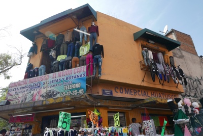 モロレス市場の近くの橋のあるところでミニバンを降りる。次はトラントンゴ行きのバスに乗るのだが1本早いバスでメキシコシティから来たのでまだ少し時間がある。とりあえずモロレス市場の方に歩いてみるが、なんかこの町も楽しそうだな。