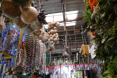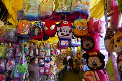 ソノラ市場にはたくさんの人がいてたくさんのモノがあった。香辛料などの食料品や薬草、メキシコで人気のあるドクロの人形、ルチャリブレのおもちゃ、そしてバッタもんのキャラクター商品。大きな市場にも関わらず所狭しとたくさんのモノが並べてあった。