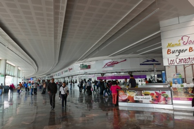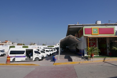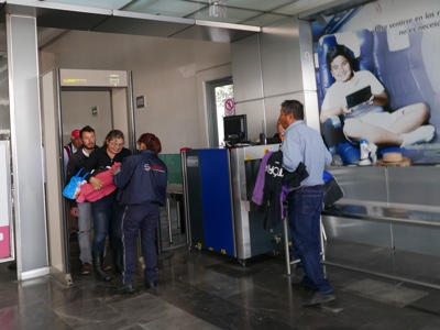 バス乗り場の入り口近くにある売店で水を買い、金属探知機を通ってバス乗り場に向かう。メキシコの長距離バスでは強盗がよく出るらしく、銃器などを持ち込めないようにチェックがあるのだ。