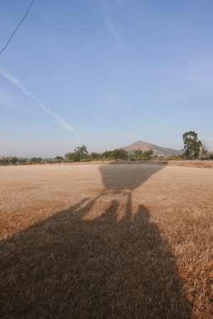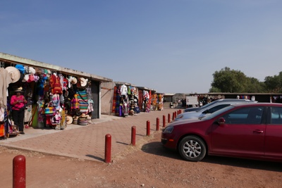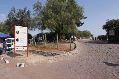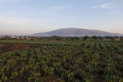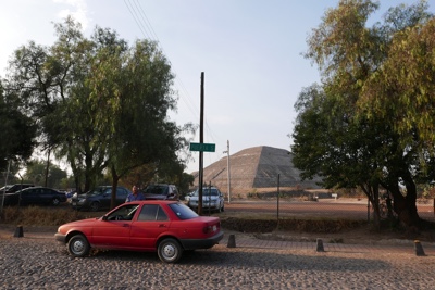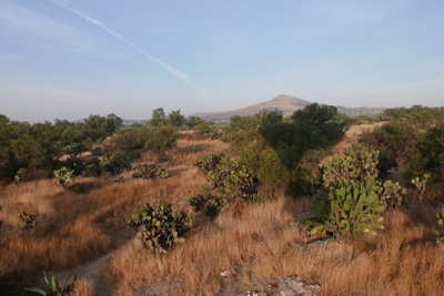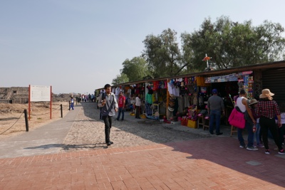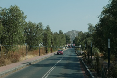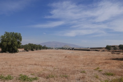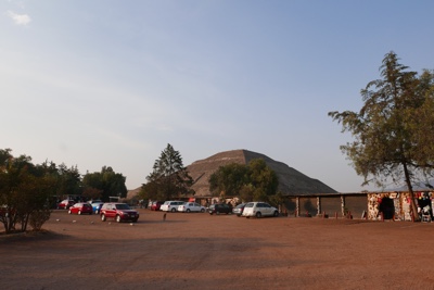 ホテルを出てPUERTA1まで歩いて行く。ホテルはテオティワカンの外の南側にあるので、遠くに月のピラミッドや太陽のピラミッドが見える。