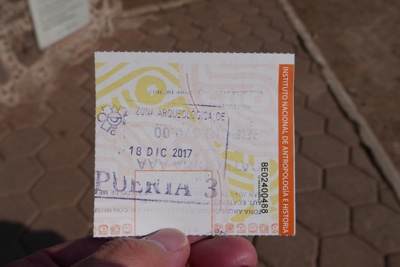 ティオティワカンには出入り口がいくつかあるのだけれど、ボクたちはPUERTA3から入ってPUERTA5に出るルートにした。入り口のチケット売り場で70ペソを払いチケット購入。