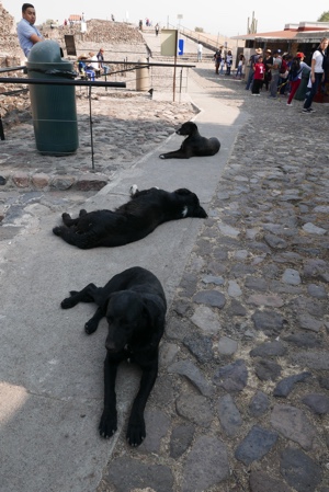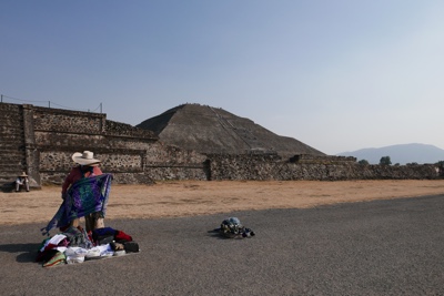 お土産売りのおばちゃんがジャガーの笛を吹いている。テオティワカンに来た時から、聞いたこともない叫び声がしょっちゅうするのでビックリしたのだった。最初は子供が叫んでいるのかと思っていたけれど実はお土産売りの人が客寄せのために吹いていたり、買った客が吹いていたりするジャガーの鳴き声の笛だ。これまた結構うるさい・・・。
