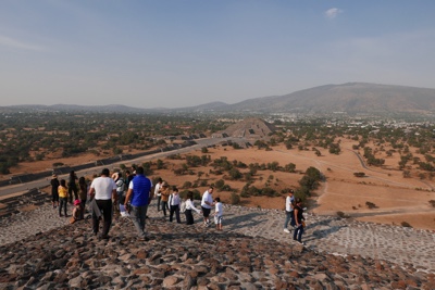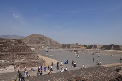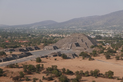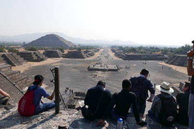 「月のピラミッド」の上まで登ってみるとテオティワカンの遺跡が一望できる。よくまあ人力でこの広さの都市をつくったもんだな。