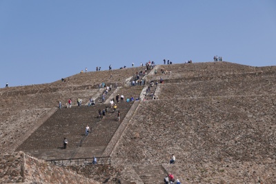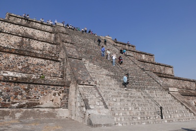 急な階段を降り、振り返ってみると「月のピラミッド」の壮大さがよくわかる。