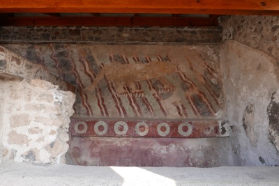 月のピラミッドからまっすぐに伸びている「死者の道」沿いにあるジャガーの絵。