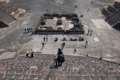 上に到着。すごくキツかった・・・。さっき登っていた「月のピラミッド」が小さく見える。