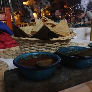 洞窟の中に作られたレストランで空気がヒンヤリとしているがとても雰囲気が良い。テオティワカンが閉まる前に再入場したいのでココではちょっとだけ休憩する。メキシコのビールとトルティーヤを注文した。ナチョスはお通し。お腹が空いていたのもあるけれどもとても美味しかった。今度来たときにはゆっくりメイン料理を食べてみようっと。今日は10%のチップで167ペソ支払う。