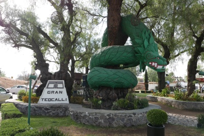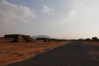 PUERTA5から再入場し、再び「太陽のピラミッド」の横を歩く。だんだん夕暮れになってきた。「死者の道」を南に歩き「ケツァルコアトルの神殿」を見て今度はPUERTA1から退場した。いや〜、結構歩いたけどテオティワカンはさすが世界遺産だけあって見所もたくさんあり、とても楽しかった。