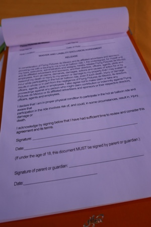 到着したらまずは契約書にサインをする。たぶん「空飛ぶし落ちるリスクもあるからちゃんと納得してよね〜」的な事が書いてあるのだろう。ここまで来て飛ばないわけにはいかないのでサインする。