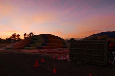 気球乗り場に到着した。膨らまし中の気球がたくさんある。