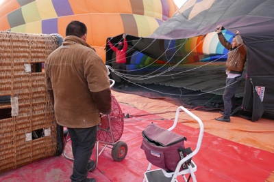 気球がパンパンに膨らみ、いよいよ乗り込んだ。ボクたちは頼まなかったが別料金でGoPro撮影もしてくれる。