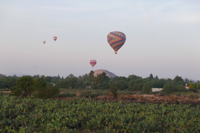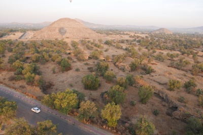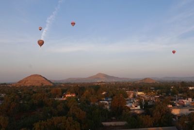 この気球ツアーはホントにオススメだ。1人14000円くらいかかるけれども、広大なテオティワカンの遺跡を空から眺める事ができるのは最高だ。それも1時間という長時間の空のクルーズが楽しめる。ただし気球に乗る前にテオティワカンの遺跡を自分の足で回っておかないとどれが何の遺跡か分からないかもしれない。