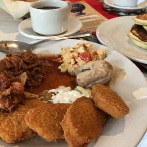 このツアーには朝食がついている。「Gran Teocalli」というビュッフェレストランに車で移動してみんなで朝食だ。早起きしたのでお腹も空いている。Magosさんや他のスタッフたちは別のテーブルで、ボクたちは一緒に乗った同じツアーの乗客たちのテーブルだ。拙い英語で会話しながら朝食を食べたのだった。