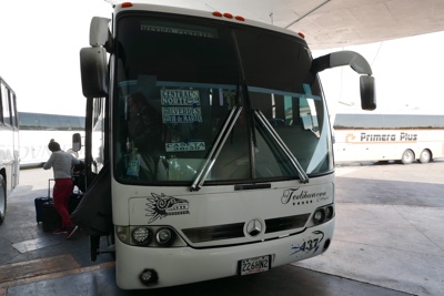 テオティワカンでバスの写真を撮るのを忘れたので北バスターミナルで撮影した写真を載せておくけどこのバスに12:05に乗った。1人50ペソ。