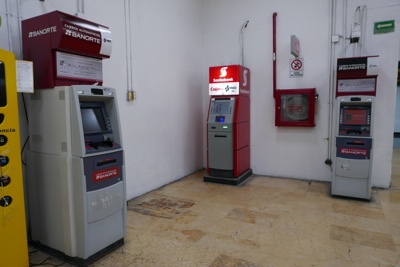 現金がないので到着したTerminal2のATMでメキシコペソをおろすことにした。何件か違う銀行のATMがあったので操作してみたがなかなかうまくいかない。3つめのATMには日本語メニューあり無事7000ペソほどおろす事ができた。